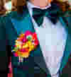 The suit doesn’t have to do all the talking. Try complementing it with Pride accessories such as a brolly, pocket square, floral buttonhole, flag or if you're looking for a statement entrance... some coloured smoke!